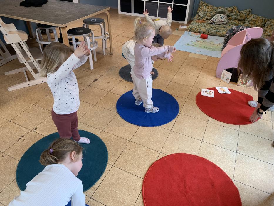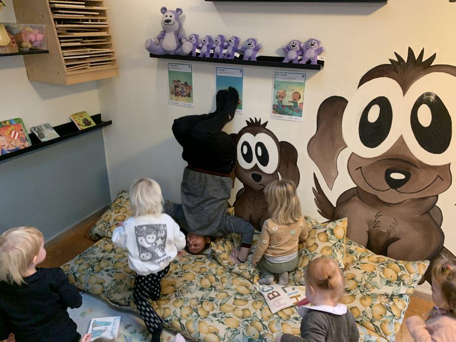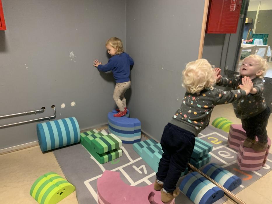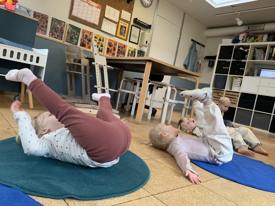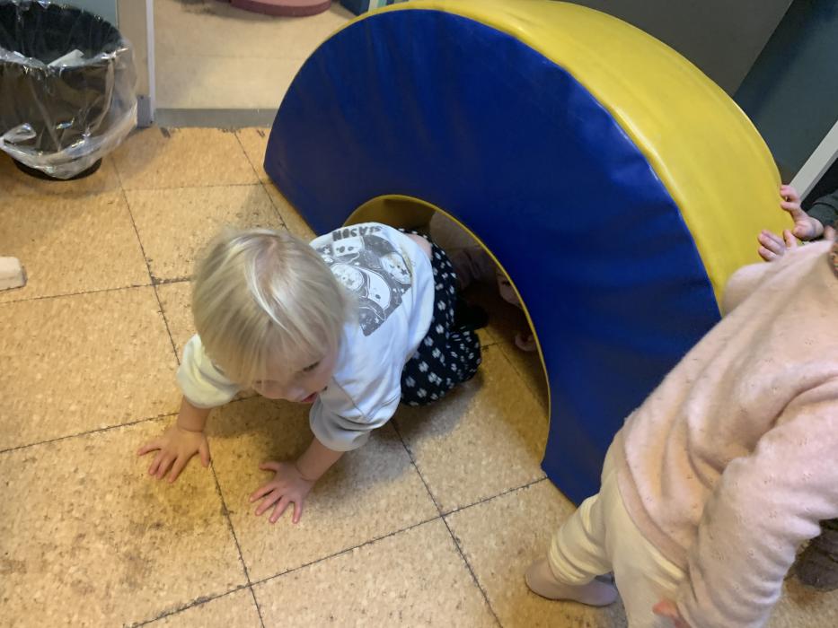 I dag har vi haft gymnastik tirsdag. Vi har stået på hoved, kravlet under og over puderne. Vi har lavet kolbøtter og rutchet en hel masse. Så har vi startet på julehyggen og lavet julepynt.
