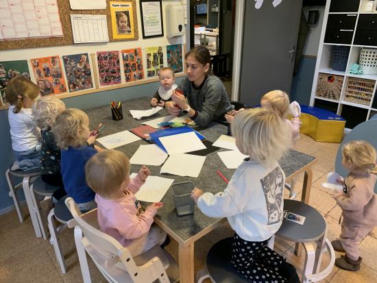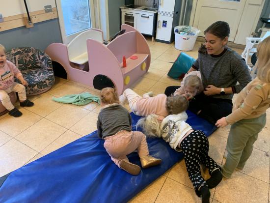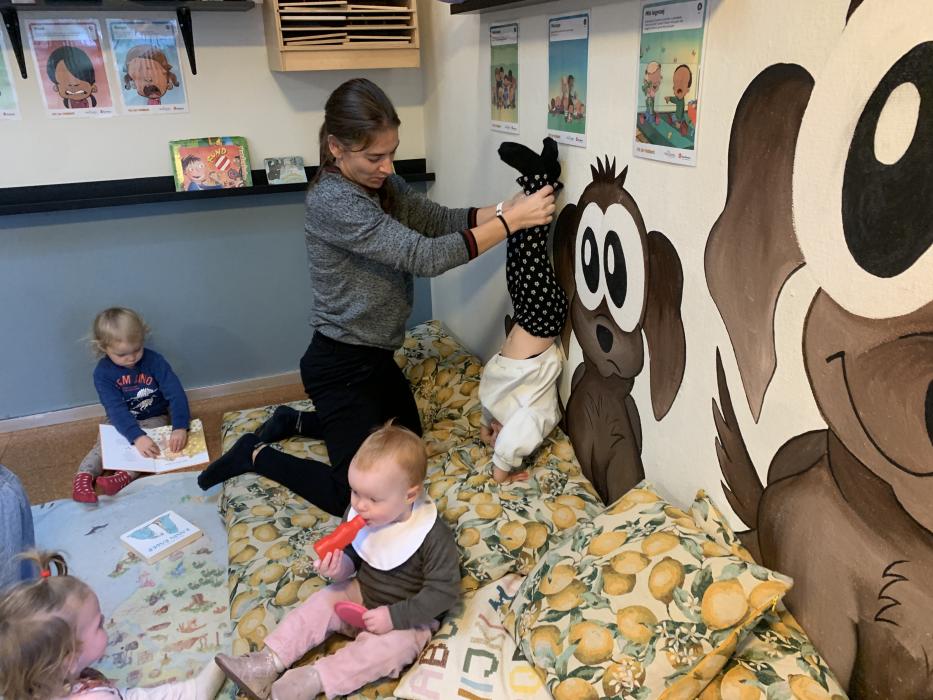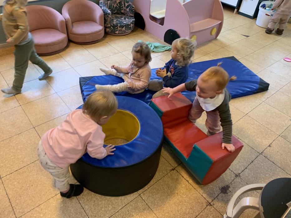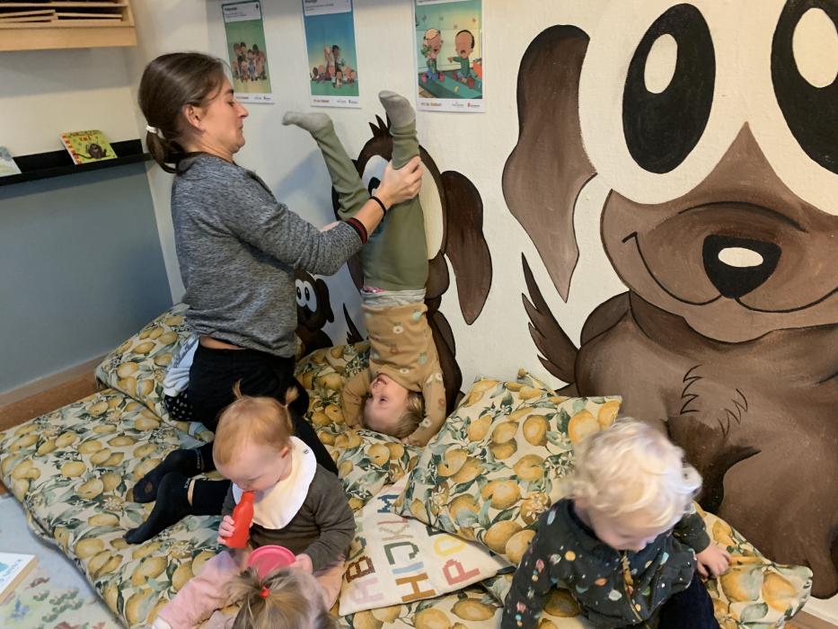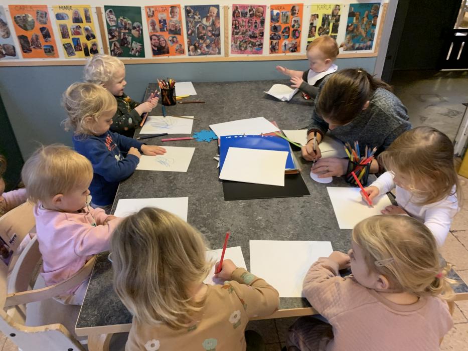 I dag har vi haft gymnastik tirsdag. Vi har stået på hoved, kravlet under og over puderne. Vi har lavet kolbøtter og rutchet en hel masse. Så har vi startet på julehyggen og lavet julepynt.