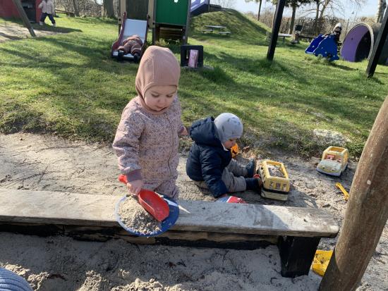 I dag har vi været på legepladsen! Vi har gynget, kørt på motorcykler og lege i sandkassen også har vi haft nogle lidt skøre voksne, som skulle tage billeder af os til vores nye garderober. Sikke vi skulle sige smil mange gange. Hihi :)