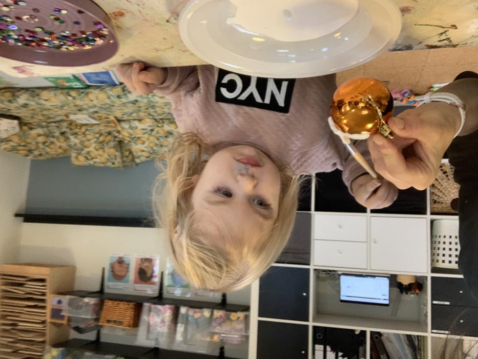 I dag har vi julehygge med julemusik. Vi har lavet hemmeligheder som vi af gode grunde ikke har taget billeder af. Vi er også begyndt på vores julekugler.