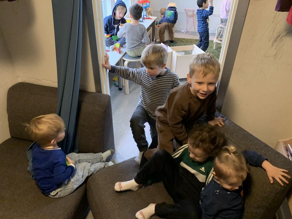 I dag har Leo, Villum og Luca været på besøg i børnehaven med Roseline. Det var spændende at lege med alle de store børn og deres seje legetøj! Vi andre gik på tur med Nikoline over til den lille legeplads på græsset, sammen med nogle af de store piger fra børnehaven :)