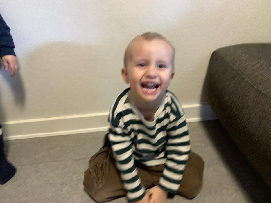 I dag har vi leget Påskefrokost, og øvet os i at sige skåååååål. Vi har holdt Gurli Gris’ 2 års fødselsdag med sang og gave. Vi har læst om firbenet der taber halen når den bliver forskrækket/bange og leget at vi selv taber vores hale når nogle siger højt BØH. Vi har leget gemmeleg, talt til tyve og fundet Lotte forskellige steder i huset. Og så lavede vi en hule under bordet vi kunne gemme os i.