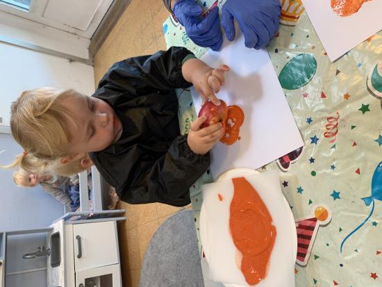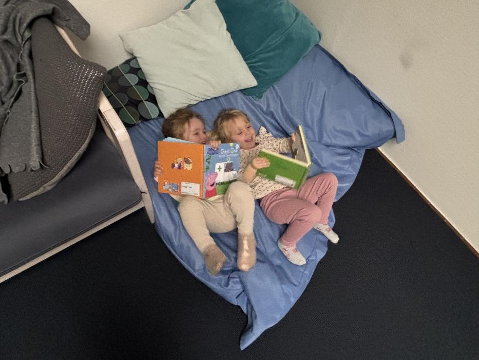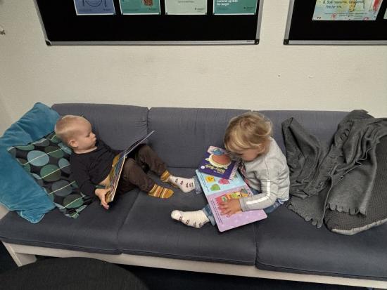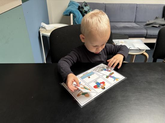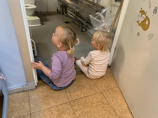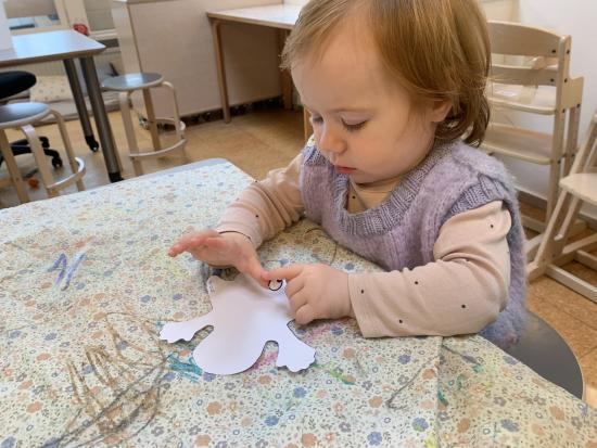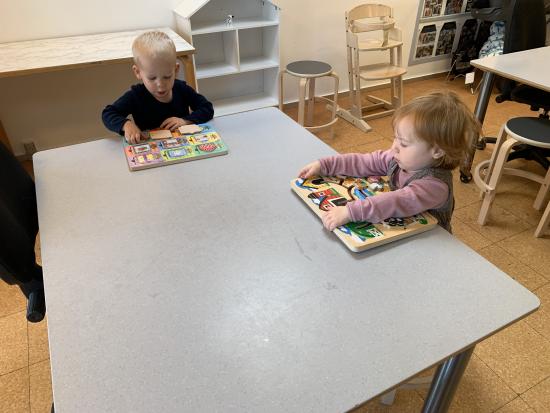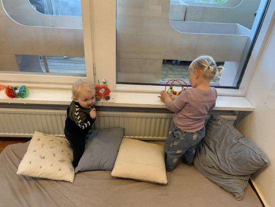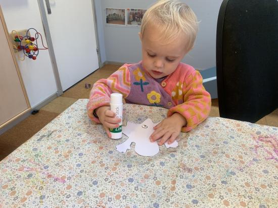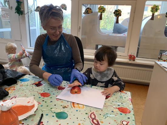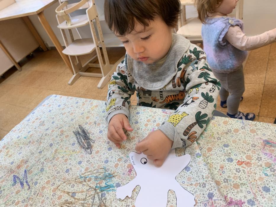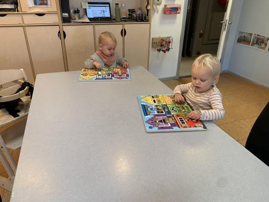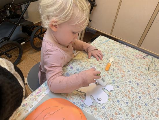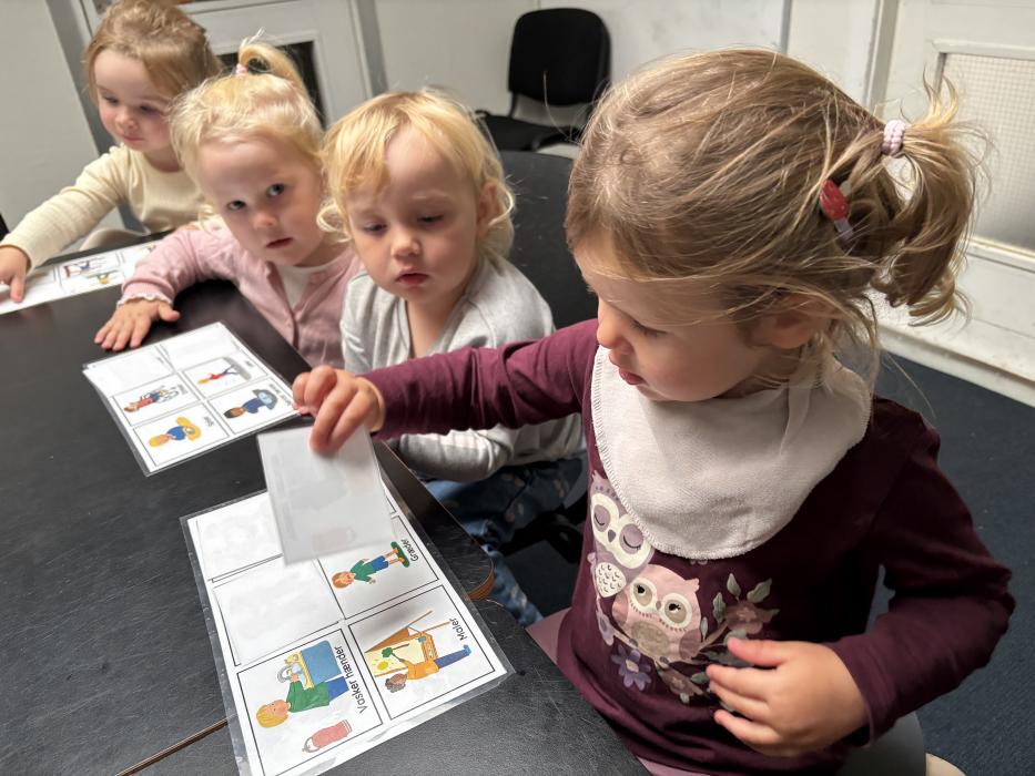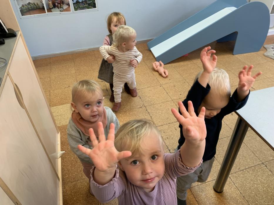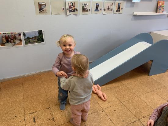 I fredags hørte var en gruppe børn i sproggruppe. Imens hørte de andre musik og dansede på stuen, legede og tegnede ved bordet. I går mandag, lavet billede lotteri med billeder af børnene selv, der blev leget, og særlig dukkesengen var der rift om :-) i dag tirsdag var en lille gruppe børn på tur, de var hjemme og se hvor Ebba bor, og imens blev der lavet mad i køkkenet på stuen, og leget med dyr.
