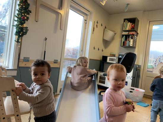 Vi har en dejlig legeplads, som vi benytter flittigt, både sommer og vinter.