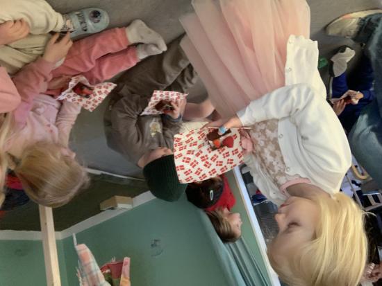 I dag har vi fejret Emmas 3 års fødselsdag. Vi sang fødselsdagssang og fyrede en glimmer raket af. Emma delte lækker chokoladekage ud til vennerne og hun pakkede gave op.