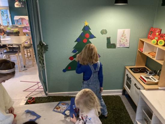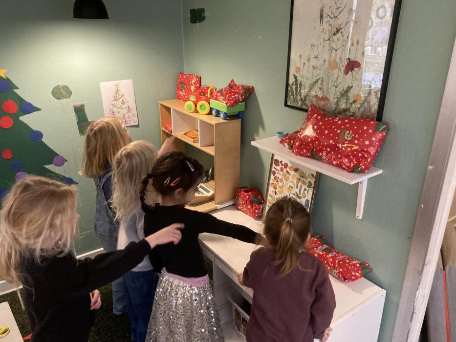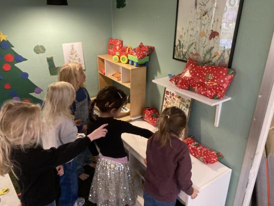 I mandags fik børnene lov til at vælge noget legetøj som vi så pakkede ind og lege jul med, børnene synes det var rigtig skægt og de voksne fik pakket en masse gaver ind :D