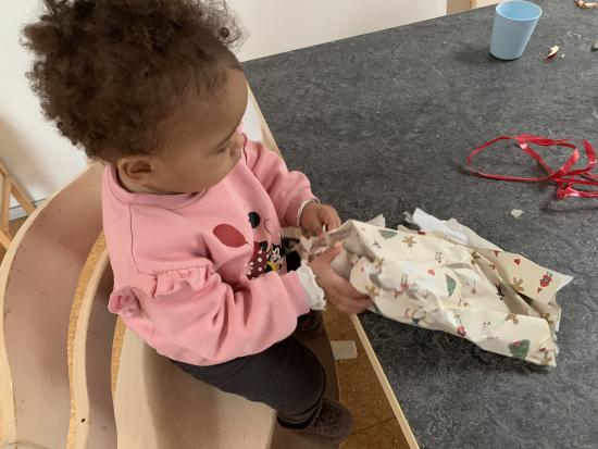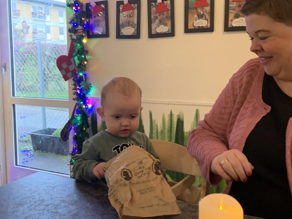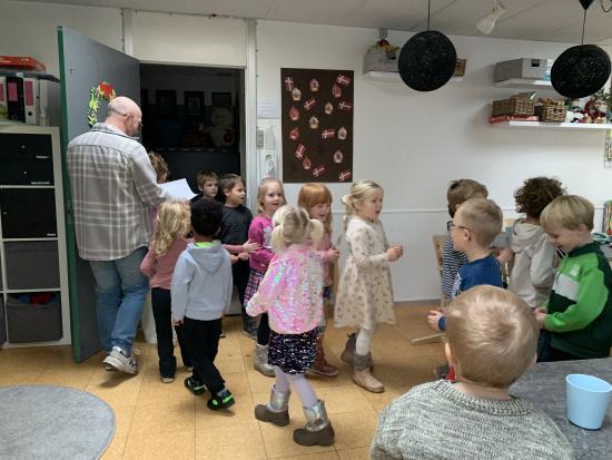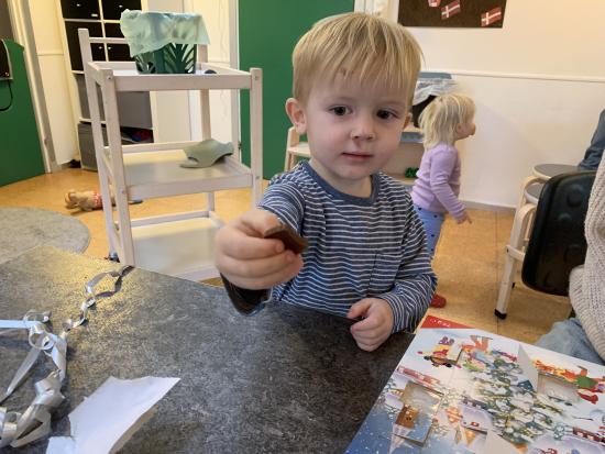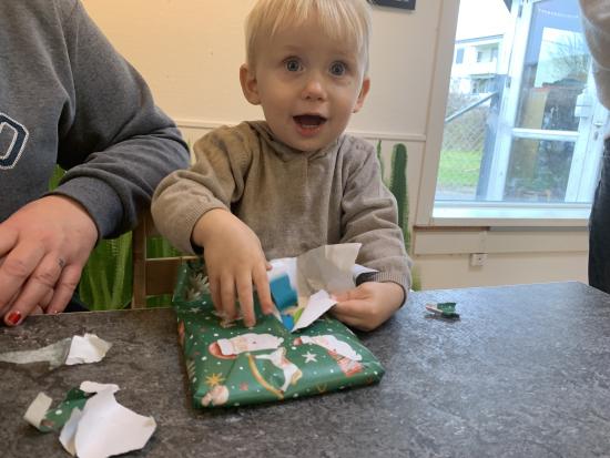 Så blev det den 9 december og i dag var det Lucas tur til at åbne en pakke, han var så heldig at få en fin bog, den læste vi allesammen i. Leo, Villum og Matteo lavede nisse lotteri med Nikoline, Aya, Knud og Svend var på legepladsen med Roseline. Vega, Neel og Luca lavede julepynt med Christina. Sikke en hyggelig dag, kram fra os allesammen