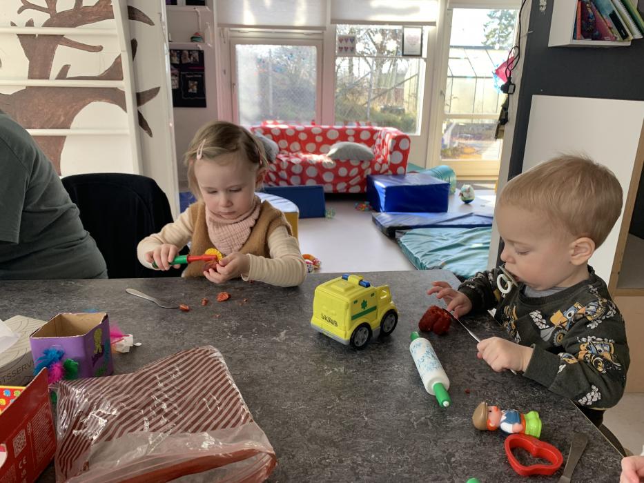 Ellers har vi leget på stuen, bygget tårne og huse med klodserne og lavet mad ved det lille bord.
