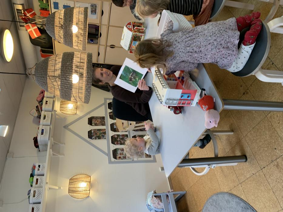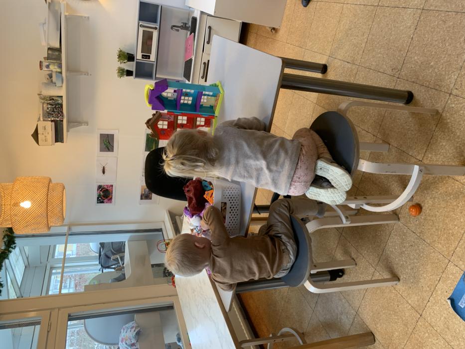 I dag har vi leget på stuen. Vi har også tabt om insekter, nogle har været i sproggruppe og tale om vores kasse med børste og orm. Der er blevet øvet at vente på tur ved rutsjebanen og der er blevet delt legetøj oppe ved bordene.