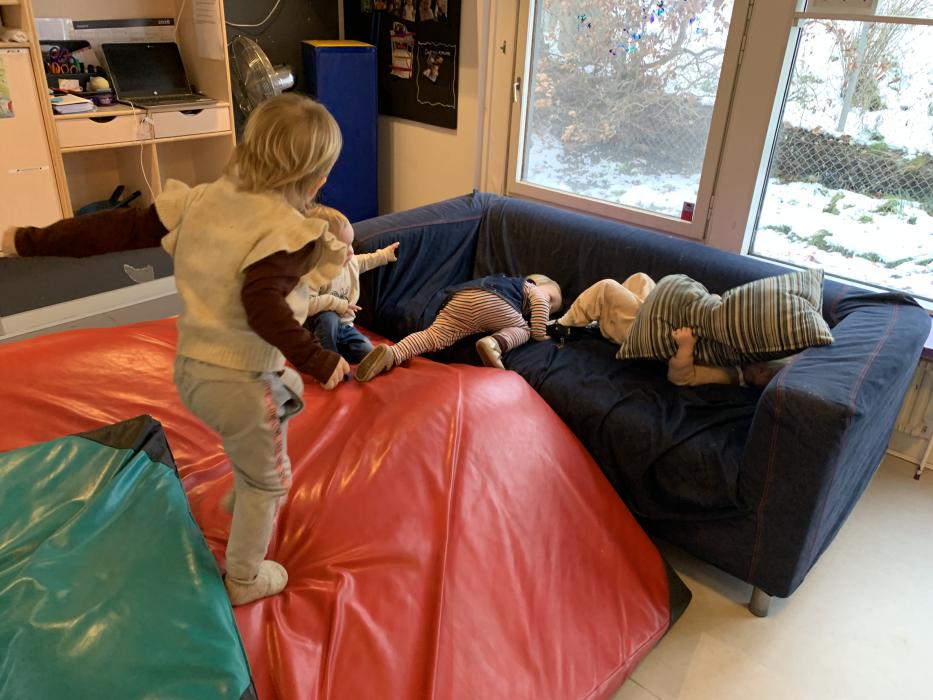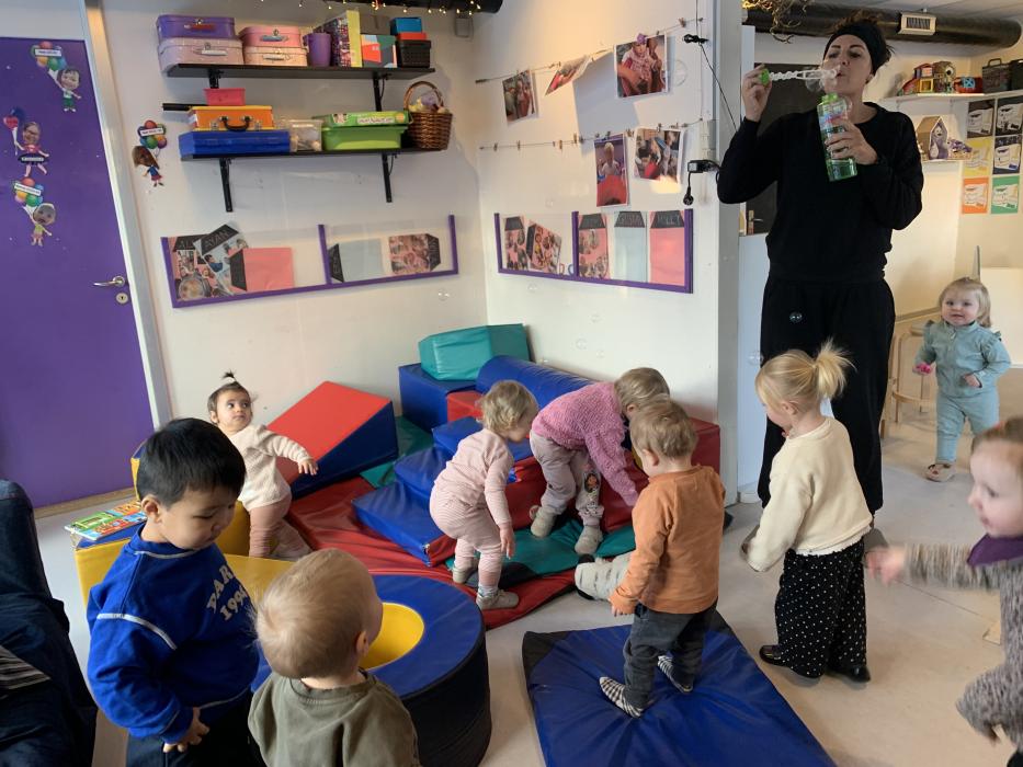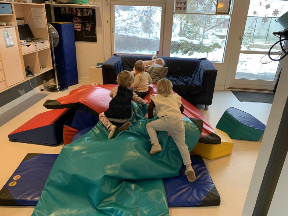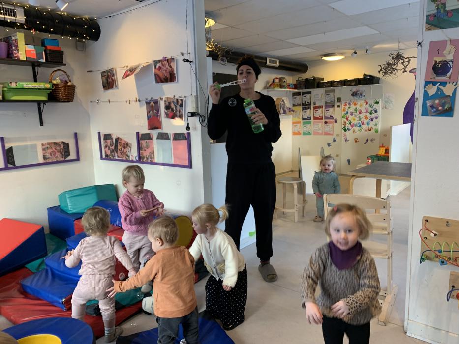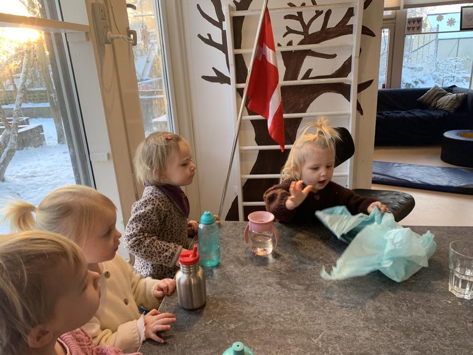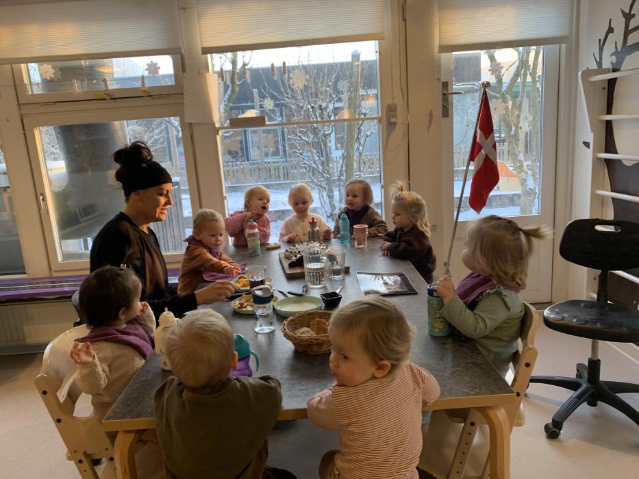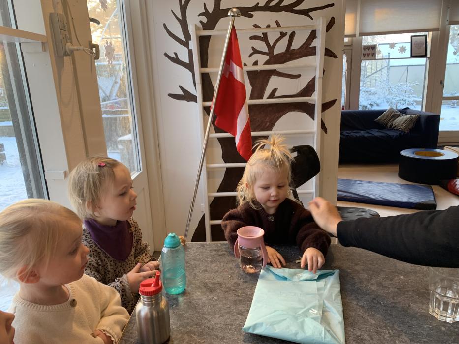 I dag har den virkelig stået i julens tegn, og vi fik således besøg af julemanden, som havde lækre pebernødder med til os:) alle børnene var så seje, ingen blev bange for julemanden, og nogle enkelte var så modige, at de sagde hej og vinkede til ham:)