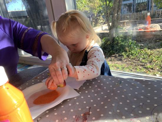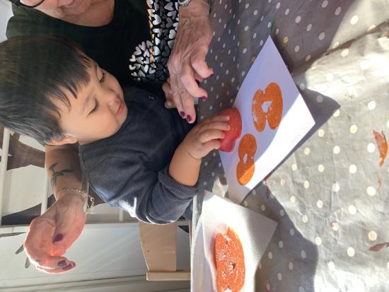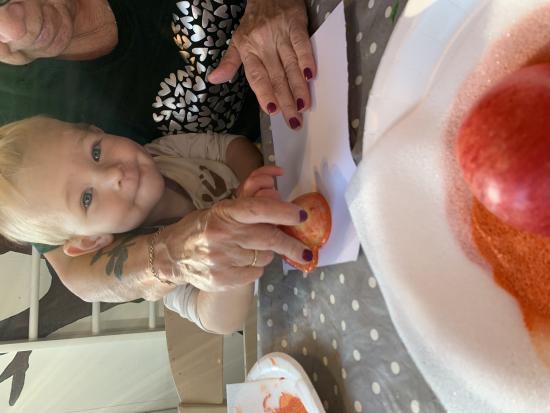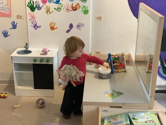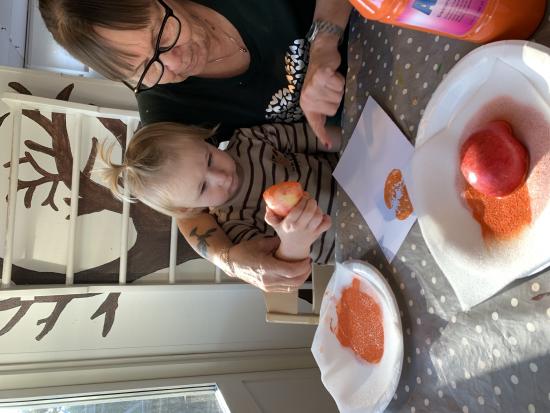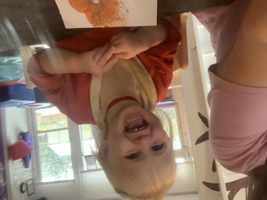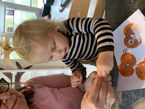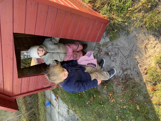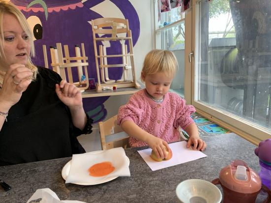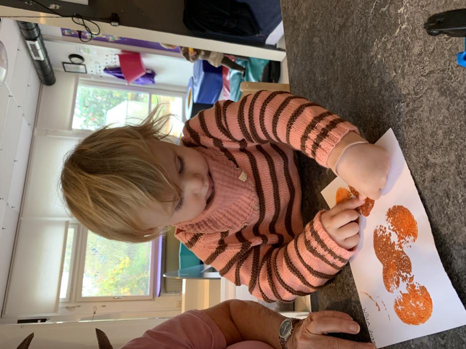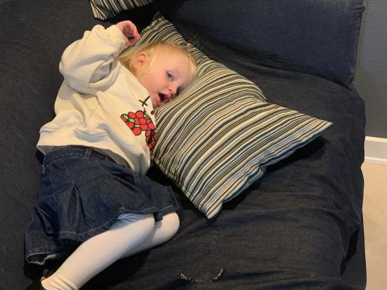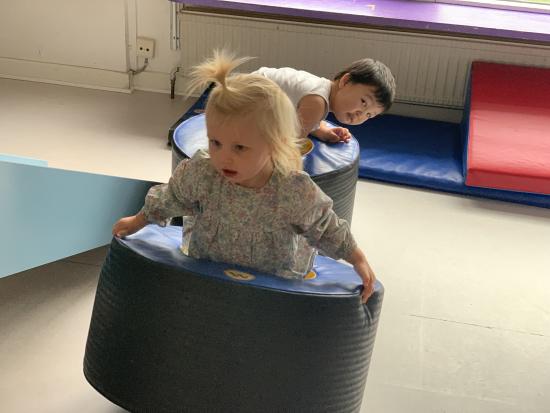 hjemme på stuen havde vi vores “lydkasse” fremme, vi skulle lytte til en lyd, og så se om vi kunne finde genstanden der passede til lyden - da koncentrationen ikke holdt til mere, skruede vi op for musikken og så hoppede vi på floor:)